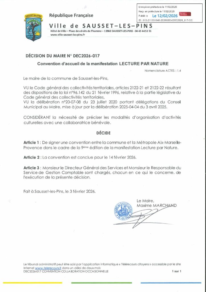 DEC2026-017 Convention d’accueil de la manifestation LECTURE PAR NATURE